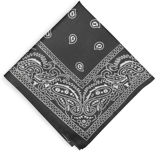 Cotton Neck Scarf 23"x23" Small Square Ethnic Unisex | Headband Scarf Bandana Wrap Vintage Head Scarf Breathable Lightweight Black