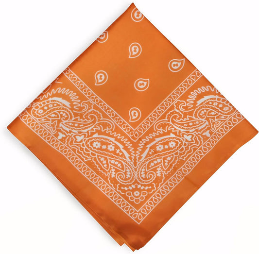 Cotton Neck Scarf 23"x23" Small Square Ethnic Cotton | Headband Scarf Bandana Wrap Vintage Head Scarf Breathable Lightweight Orange