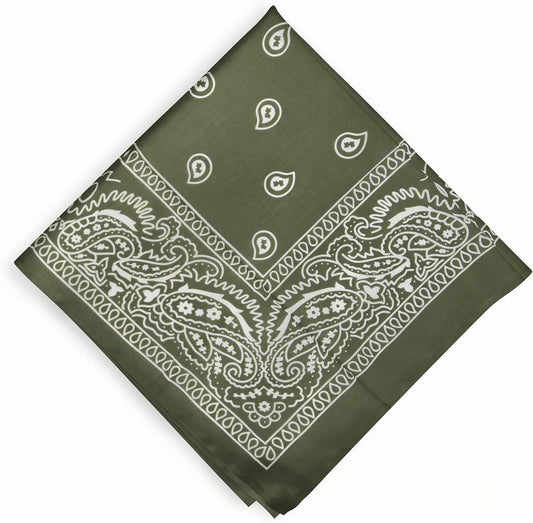 Cotton Neck Scarf 23"x23" Small Square Ethnic Cotton | Headband Scarf Bandana Wrap Vintage Head Scarf Breathable Lightweight Green