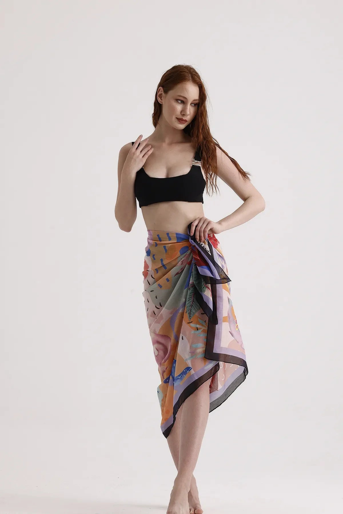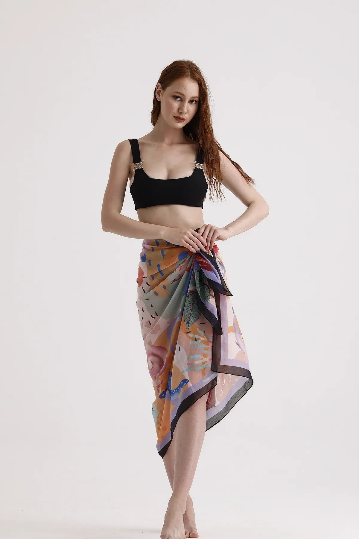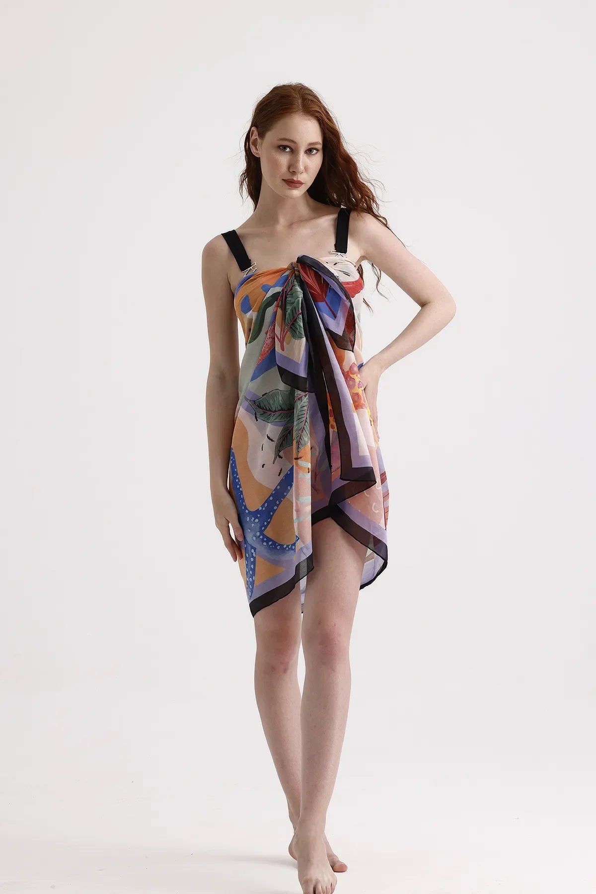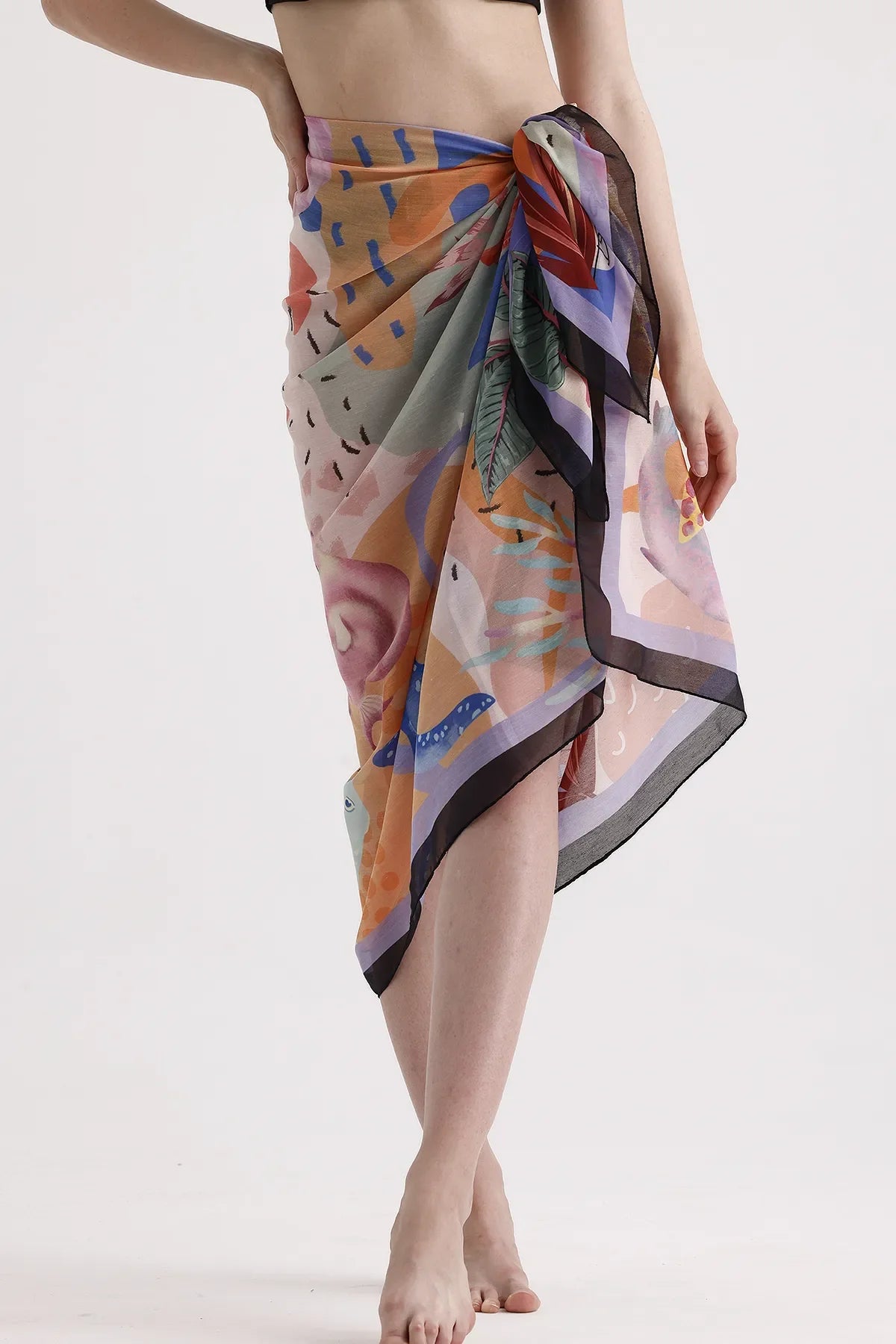 • HIGH QUANLITY MATERIAL: Cute sarong coverups for women is made of breathable fabric: 100% Polyester, which keeps you cool on hot days. Dscarf swim sarong is semi-sheer, silky soft and quick drying. Perfect beach cover up for sun protection.
