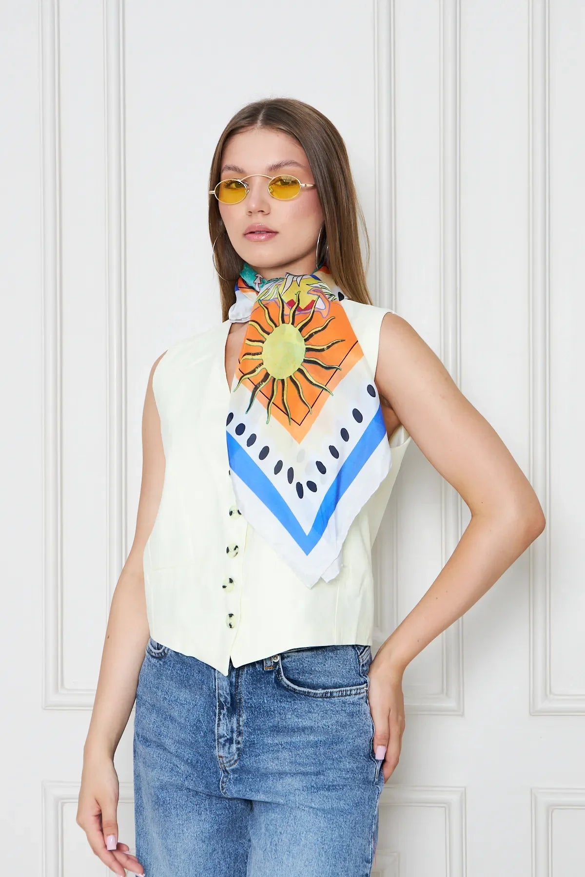 A symbol of elegance and style, this scarf, made from 100% silk and crafted with meticulous attention to detail, adds a sophisticated touch to your look. Measuring 90x90 cm, this specially designed scarf features entirely hand-stitched edges, ensuring both an aesthetically pleasing and high-quality appearance. Every detail reflects refinement, and this scarf is shipped in a stylish and protective special box. It's an elegant gift option for yourself or your loved ones. Whether for everyday wear or special occasions, this silk scarf will become an indispensable part of your wardrobe, highlighting your style.